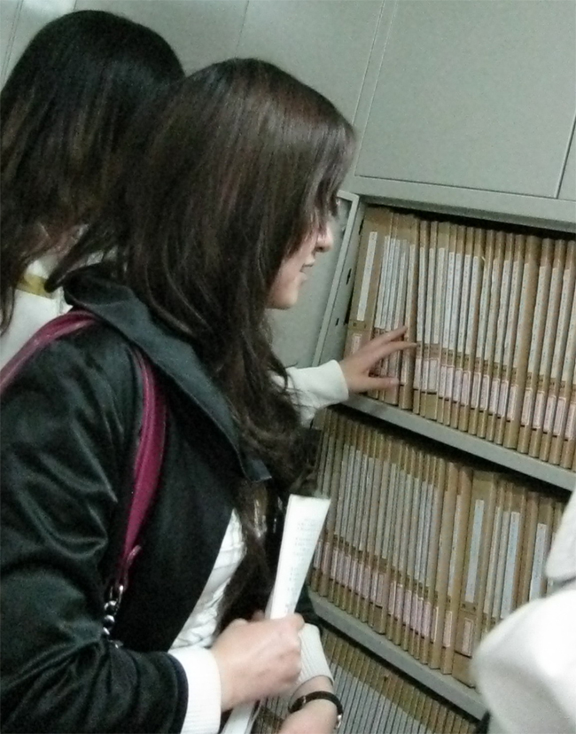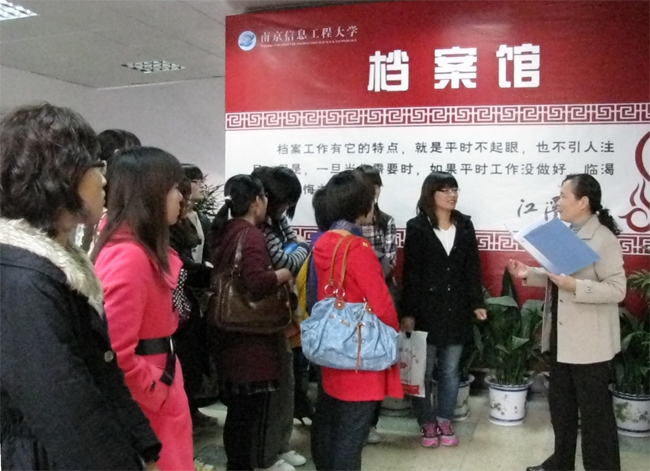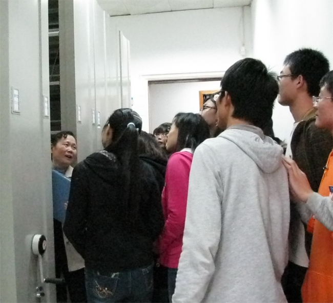 2010年11月10日下午,我校语言文化学院文秘专业学生来档案馆参观学习。档案馆李淑君主任就我校档案馆的基本情况、档案馆职责以及档案归档、整理流程做了详细的介绍,并回答了学生提出的问题。学生兴致勃勃的参观了档案馆库房、档案阅览室、档案数字化室等。